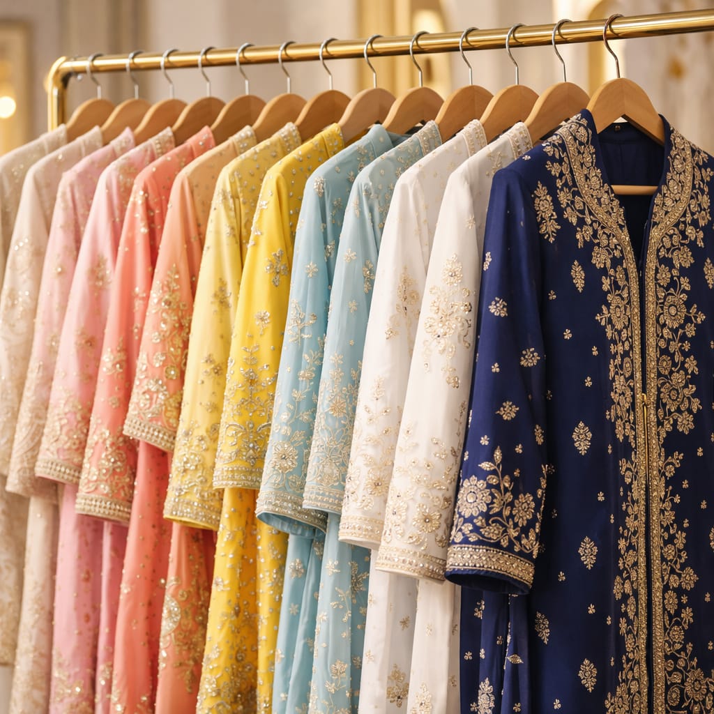 Explore our stunning collection of Pakistani suits featuring intricate embroidery and rich fabrics. These elegant ensembles blend traditional Pakistani craftsmanship with modern sophistication.